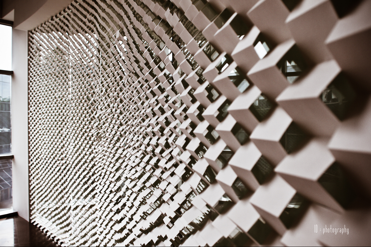 Just love how a simple patterned fold can become a thing of beauty when laid out like this, and on a wall no less. Love how the shadows just created that 'scaly' effect and perspective on an otherwise staid and empty space/wall!